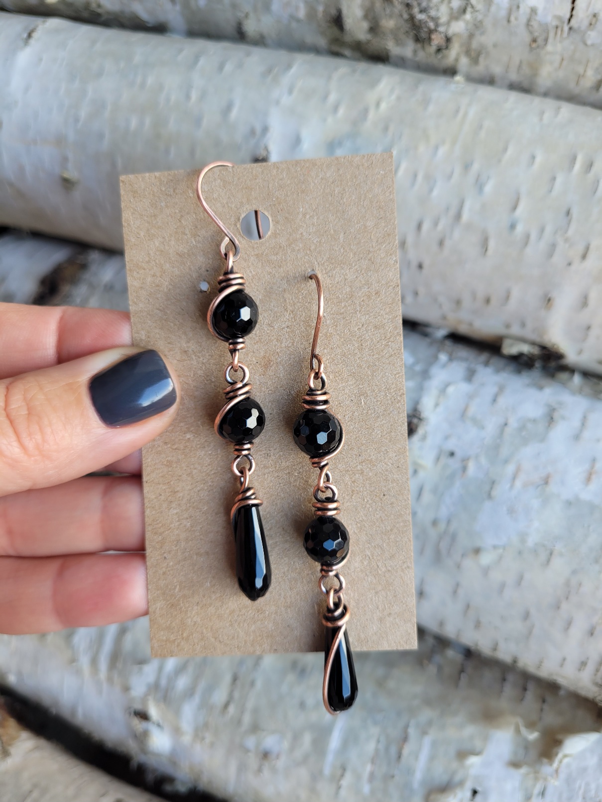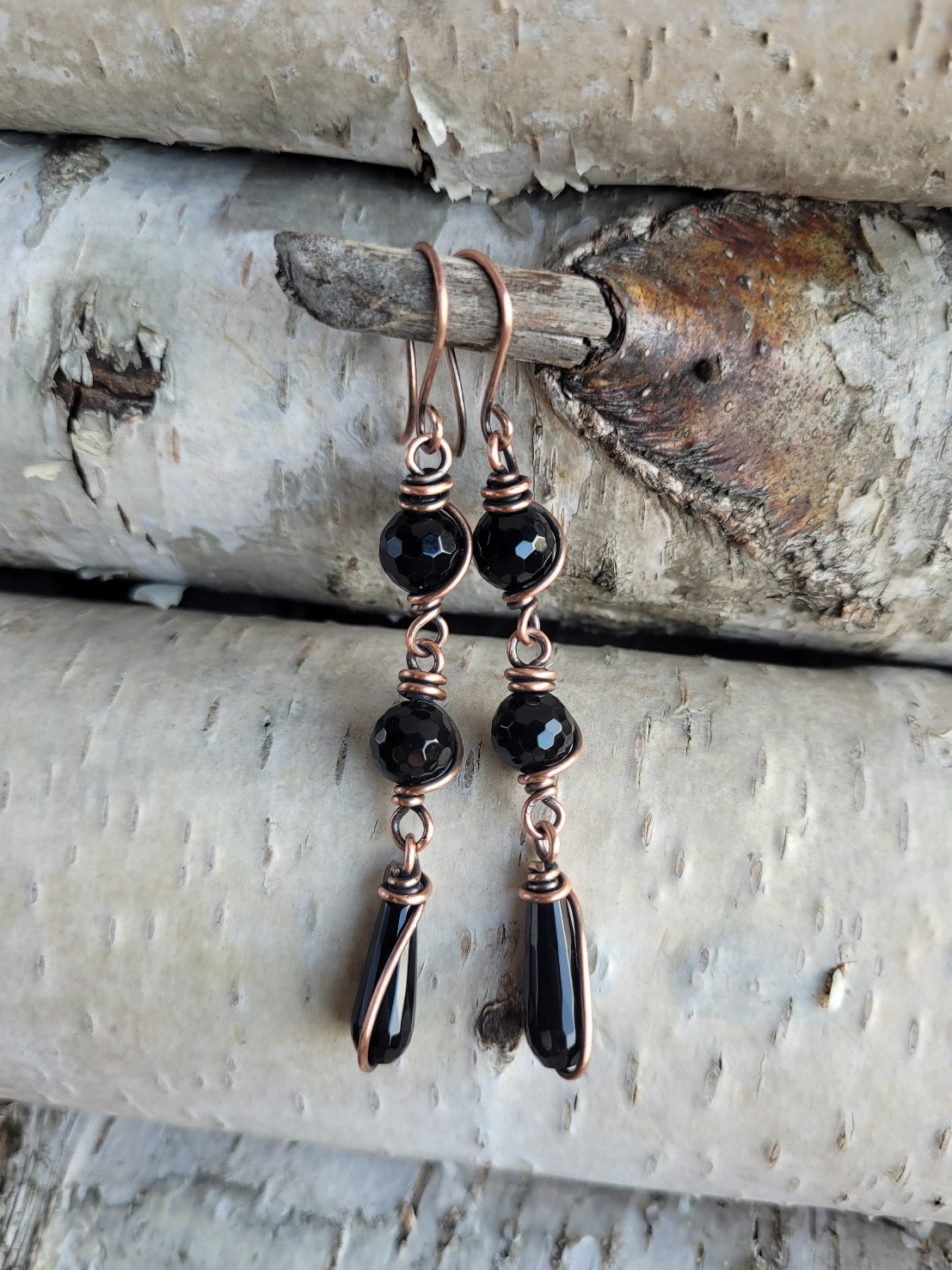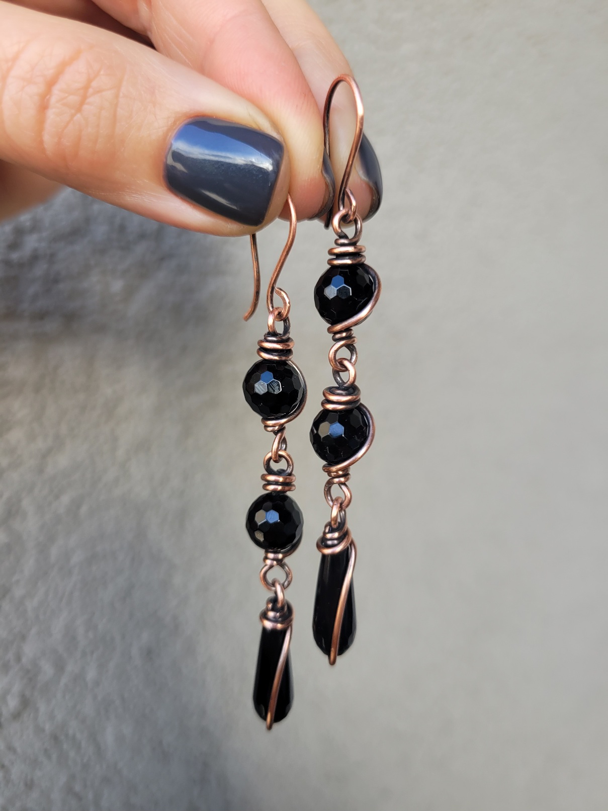 Kolczyki miedziane onyks długie będą wspaniałą ozdobą dla osób ceniących sobie oryginalne rękodzieło wykonane z pasji.